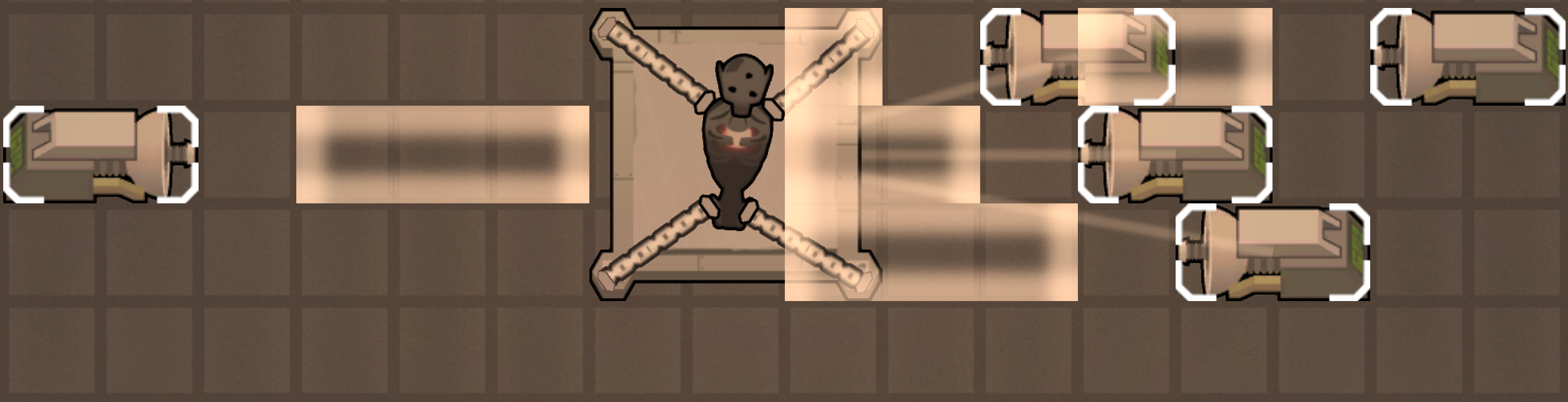 | current | 20:22, 29 April 2025 | 1,974 × 506 (847 KB) | Vertigo (talk | contribs) | Showing electric inhibitor effective distance and blocking. Note that the inhibitor on the left is too far from the holding platform and the one in the top right is blocked by the inhibitor in front of it. |